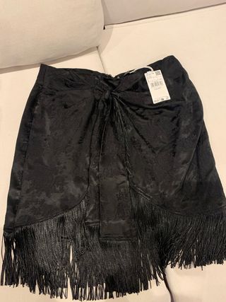 Falda Mango Flecos Negra Talla L