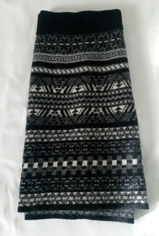 Preciosa falda corta con un diseño geométrico y tribal. Está en perfecto estado porque apenas se usó. - Tejido de punto. - Cintura elástica. - Estampado en blanco, negro y gris.