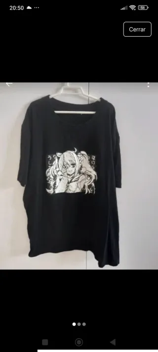 Camiseta negra con un llamativo estampado de estilo anime en la parte delantera. Es una prenda cómoda y con un diseño único. - Estampado de personaje anime. - Manga corta. - Cuello redondo.