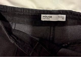 Falda vaquera de Stradivarius en color negro y gris. Un básico para tu armario. Puesta en dos ocasiones. - Diseño de corte recto. - Cintura alta. - Bolsillos delanteros y traseros.