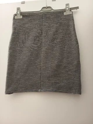 Falda corta con diseño cruzado. - Tejido con textura de rayas finas. - Corte asimétrico. - Forro interior negro. - Material: 64% viscosa, 32%poliester, 4% elastano En buen estado. Varias puestas pero está bien para seguir usandola. Se vende porque ya no me está. Cualquier pregunta no dudes en hacerla. ¡Tengo más cosas en mi perfil, échales un vistazo!🤗 #falda #gris #mini #bonita #s #minifaldas