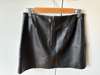 Falda corta con acabado de piel sintética. - Diseño moderno y versátil. - Costuras marcadas para un estilo definido. - Corte mini favorecedor.