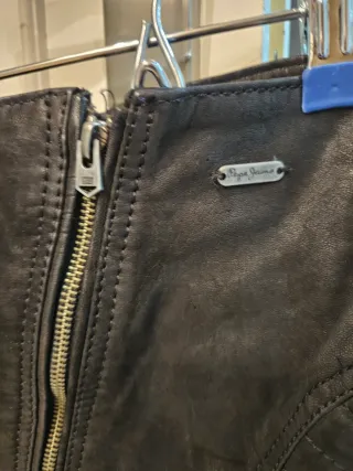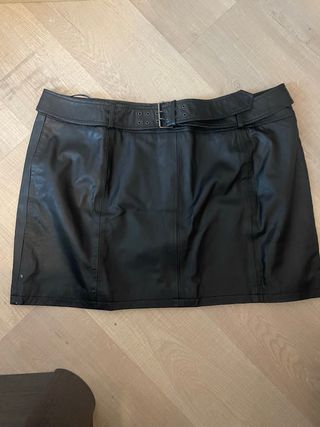 Falda de cuero PU talla S, puesta 1 sola vez. Con forro interior para el frio. costó 35€. comprada en eBay. No negociable.