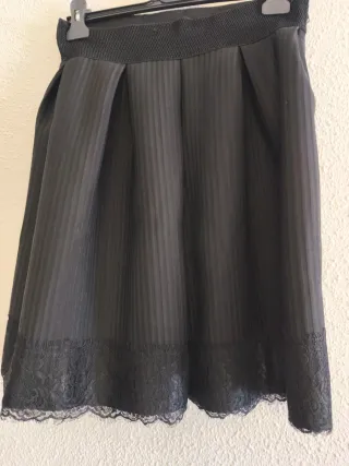 Preciosa falda negra de Zara con detalle de encaje. - Diseño con encaje en el lateral. - Cintura elástica para mayor comodidad.