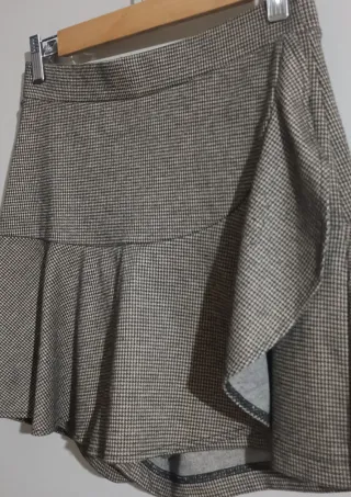 Falda pantalón con estampado de cuadros. - Diseño con volantes. - Cintura marcada y elástica. Talla S, para una 38. Está en perfecto estado.