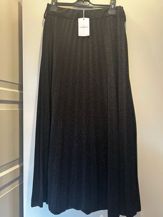 Elegante falda larga negra con detalles de lurex brillante. Su diseño plisado le da un movimiento muy bonito. - Tejido con hilo de lurex. - Cintura elástica. - Diseño plisado.