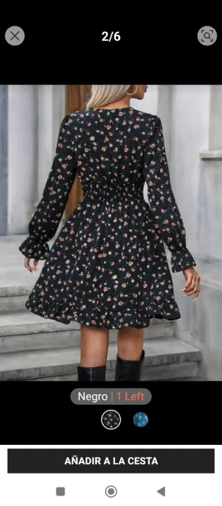 Vestido negro con detalle fruncido en la falda. - Diseño tipo camisa. - Mangas largas con puños abotonados. - Tejido satinado. - Parte de abajo elástica.