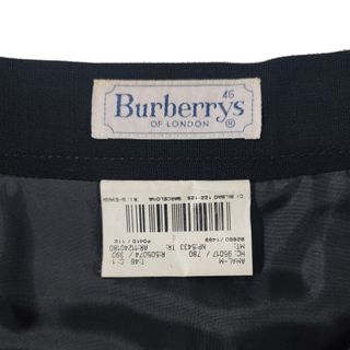 Burberrys/ Vintage- Falda midi negra talla M (46 antigua). Por favor, comprobar las medidas. Cierra con cremallera invisible central trasera y botón. Cintura con elásticos laterales. Falsos bolsillos frontales. Formato recto con abertura central trasera. Composición: 50% lana virgen, 50% viscosa. Forro de viscosa al tono. Ancho de cintura sin estirar: 39 cm. Largo: 63 cm. En muy buen estado, sin faltas.
