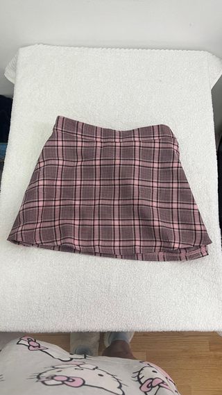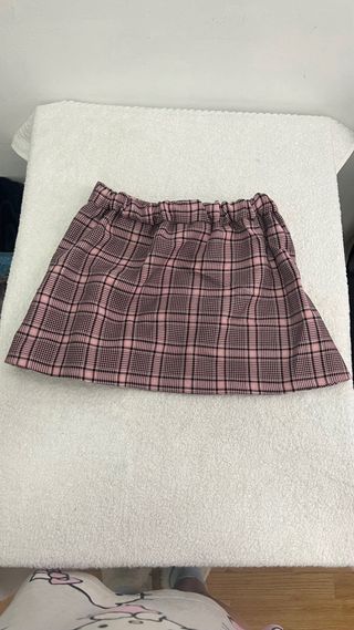 Minifalda con un clásico estampado de cuadros. Gasto una 34 de adulto aunque esta falda la compre en la seccion niños. - Con cinta elastica, detalle trasero - Diseño a cuadros. - Color rosa y negro. ✅‼️Si quieres mas ropa de mi perfil te puedo hacer una rebaja.