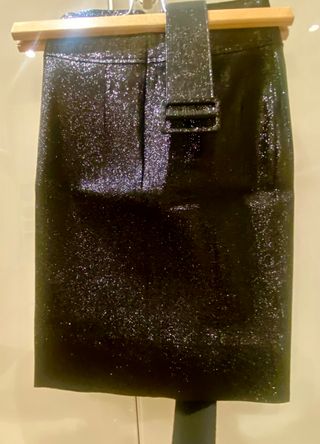 Minifalda elástica con brillo, perfecta para looks navideños. Medidas: ancho 40 cm, largo 46cm.
