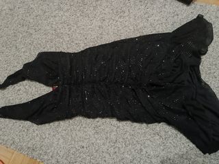 Vestido negro con un diseño elegante y cómodo. La goma en la cintura ayuda a definir la silueta. - Tirantes finos. - Goma elástica en la cintura. - Largo midi con abertura lateral. Vestido de gaza, con una falda debajo que evita la transparencia. Medidas: Sisa a sisa 48 cm. Cintura de goma 41 cm. Largo 112 cm. Puesto en una ocasión. Hago envíos.