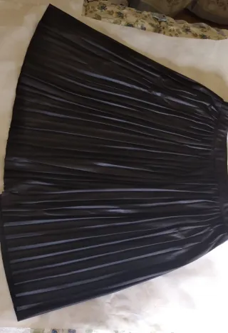 falda negra con etiqueta sin estrenar muy combinable tejido muy agradable muy elástica tableada con vuelo cintura 38 da hasta 45 ...largo 39 ....2 cm de bajo.....cintura con goma de 4 cm k se puede alargar muy fácilmente ....tejido muy suave ideal para invierno o entretiempo 🖤🖤🖤