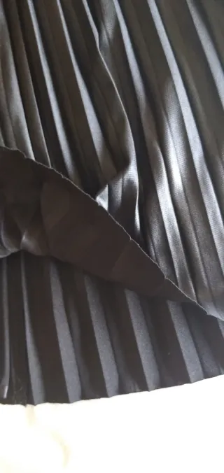 Falda de color negro con tablas. Largura por encima de las rodillas. cintura elástica.