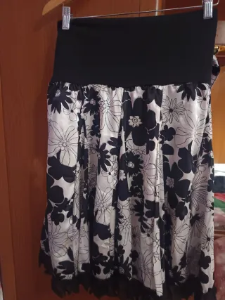 Falda con cintura elástica,encaje y forro.Nunca puesta, a estrenar, guardada en el armario pero quité las etiquetas.Comprada en boutique de la marca Jot, hecho en Italia,39'95 euros.Con abalorios.Talla para S y M.Si interesa alguna prenda más de mi perfil puedo hacer precio