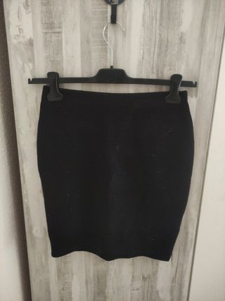 Minifalda elástica de color negro - Corte acampanado. - Tejido suave. - Talla S - Marca Bershka
