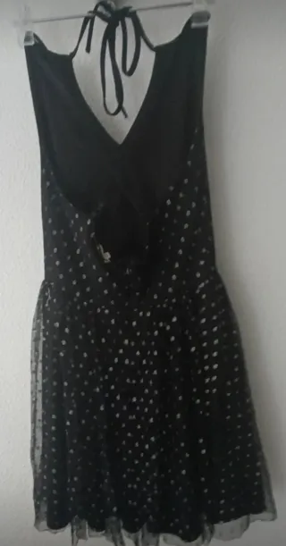 Vestido corto con estampado con detalles plata - Diseño con escote en V. - Tirantes finos. - Cintura elástica. - Falda con vuelo.