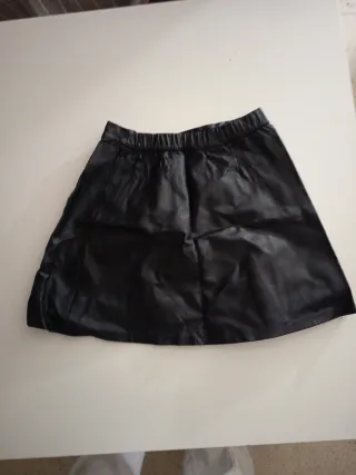 Falda juvenil de color negro, ideal para niñas. - Material: Efecto piel. - Cintura elástica para mayor comodidad.