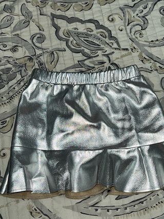 Falda corta con volantes y acabado brillante. Talla 8niña 128cms - Diseño con múltiples capas de volantes. - Tejido con detalles metalizados.