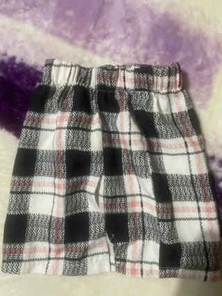 Falda de cuadros con cintura elástica. - Diseño de cuadros en blanco, negro y detalles en rosa. - Cintura elástica para mayor comodidad.