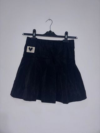 Falda negra para niña con un detalle de corazón en la etiqueta. - Diseño plisado. - Etiqueta con diseño de corazón.