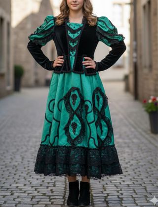 Vestido Goyesco Verde y Negro