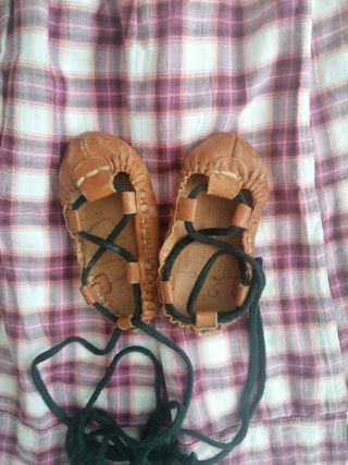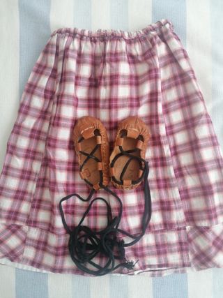 Conjunto de baserritarra para niña, ideal para fiestas y eventos. Abarcas de cuero número 22 - Falda a cuadros con cintura elástica. - Preciosas Abarcas de cuero con cordones negros.Número 22 - Talla aproximada 2/3 años.