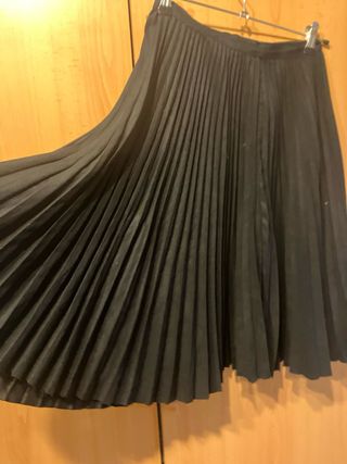 Falda negra con diseño plisado y cintura elástica. - Diseño plisado en toda la falda. - Cintura elástica para mayor comodidad. - Caída muy fluida. - Guantes de regalo.
