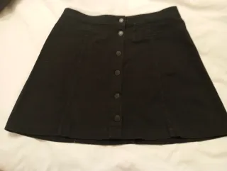 Falda tejana color negro de Bershka, talla 32. La vendo porque he ganado unos kgs y no voy nada cómoda. Estiliza bastante la figura, queda ajustada.