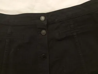Falda tejana color negro gastado con botones delanteros y bolsillos en ambos costados. Muy cómoda y con dos usos. Composición: 99% algodón y 1% elastano.