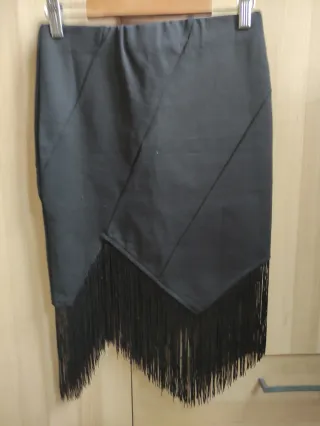 Falda tubo negra con flecos