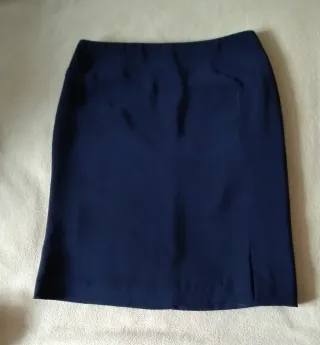 Falda de corte tubo, elegante y versátil. Diseño ajustado. Largo hasta la rodilla. Cierre lateral con cremallera. Material: 75% Viscosa 22% Poliamida 3% Elastano En perfecto estado. Aunque en la etiqueta pone talla 38, es más bien 36.