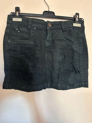Falda vaquera negra desgastada