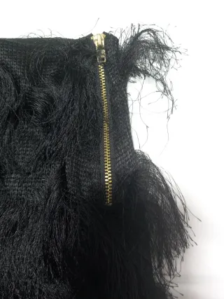 Falda corta con un diseño de flecos muy llamativo. - Detalle de flecos en toda la prenda. - Cierre de cremallera lateral.