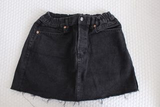 Cintura fruncida Falda vaquera de Mango en color negro. Un básico versátil para tu armario. - Cintura elástica. - Bolsillos delanteros. - Bajo deshilachado.