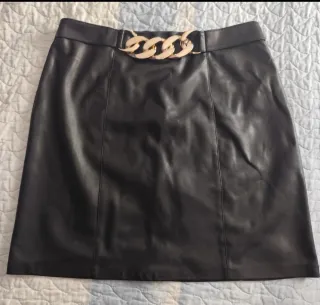 Falda de piel con un diseño elegante y moderno. - Material: Piel. - Color: Negro. - Detalle de lazo en la cintura. - Corte recto.