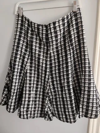 Falda de la marca MISS TELAS con un diseño de cuadros. Diseño elegante para una ocasión especial o para el día a día - Diseño de cuadros con un entreverado negro. - Combinación de blanco y negro.