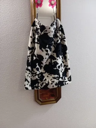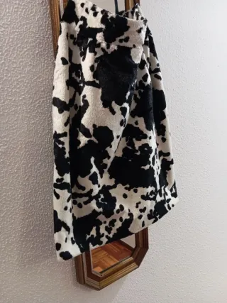 Falda corta de terciopelo con estampado de vaca. Medidas, lo argo 55cm ancho cintura 72cm cadera 100 cm - Diseño llamativo en blanco y negro. - Tejido suave y agradable al tacto.