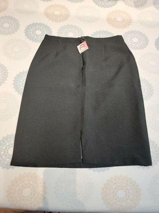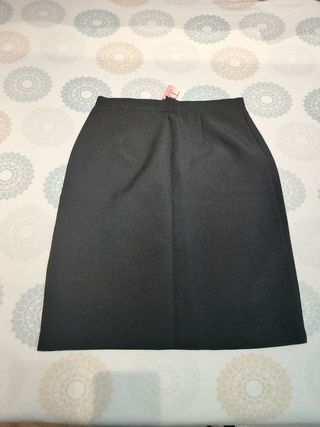 Falda negra de corte recto, ideal para combinar. - Tejido suave y cómodo. - Cintura elástica, pone una talla 36, pero como va con goma en la cintura, puede ser tb una talla 38, está prácticamente nueva