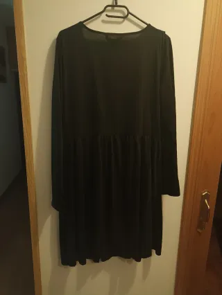 Vestido largo y fluido de Zara. Talla S color negro con dibujo a rayas. Lleva forro en falda. - Diseño con cuello camisero. - Cintura elástica. - Manga larga con puños abotonados. - Cierre de botones en la parte delantera. - Bolsillos en el pecho. Nuevo sin estrenar.