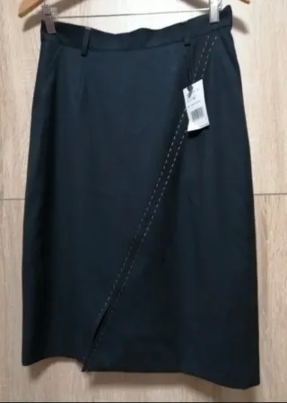 Falda recta , color negro con detalles en color beige . Largo de 64 cm ,cintura de 38 cm , talla 38 (aunque pone 42 no da tanta talla - es talla pequeña, puede que sea talla antigua) , de la marca Él Corté Inglés . Nueva con etiqueta .