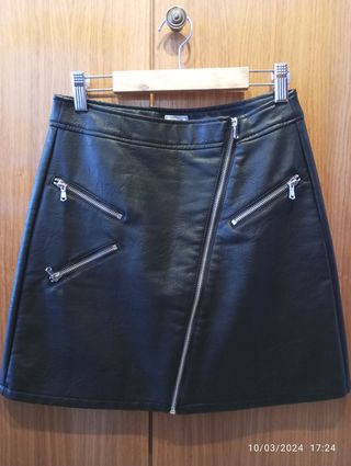 Falda tipo cuero corta ajustada con detalles de cremallera talla m equivalente a 34-36