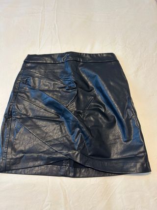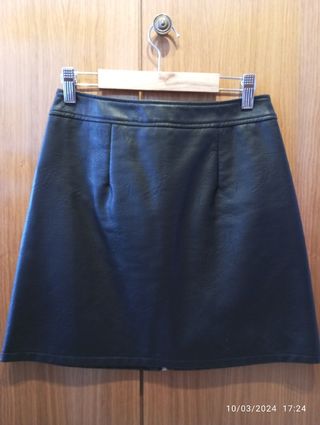 falda cuero negra con tablita abajo muy chula y muy nueva ,puesta en un par de ocasiones de zara talla s