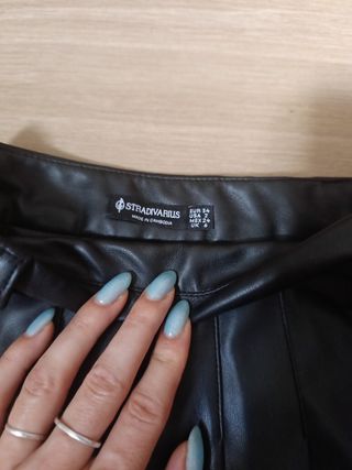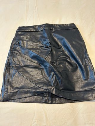 Es una falsa negra de pilipiel , con un fruncido muy bonito. Es la talla 36 de la tienda stradivarius. Esta en perfectas condiciones.