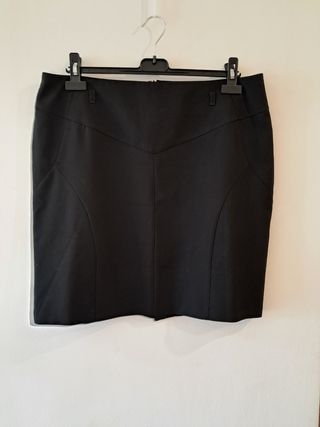 Elegante falda negra para mujer. - Corte entallado. - Tejido liso. - Cierre de cremallera. Muy pocas puestas. Marca: C&A Talla: 48