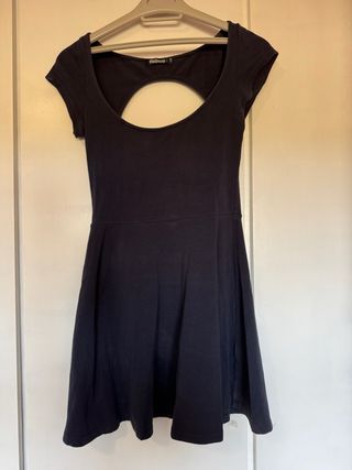 Vestido corto con un diseño moderno y atrevido. - Escote pronunciado. - Abertura circular en la espalda. - Falda con vuelo.