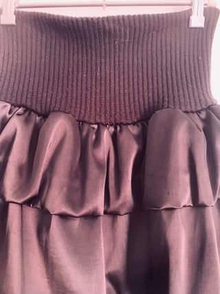 Color dos tonos maquillaje, burdeos,negro. Cintura elástica equivale a una 44/46, desde 80 cm hasta 100. Forro de color burdeos interior.