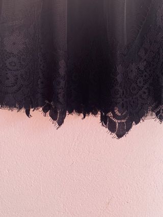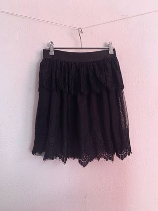 falda negra cortita, esta con la etiqueta, se transparenta un poco la ropa interior si no es negra