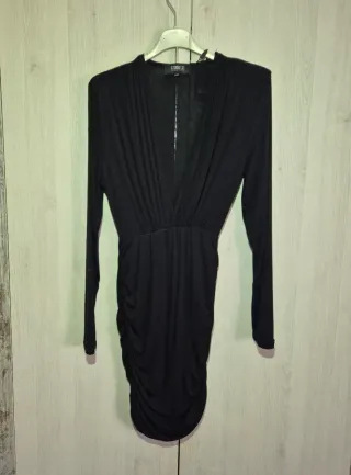 Vestido elegante de manga larga con escote pronunciado y detalles fruncidos. - Diseño drapeado. - Cintura marcada. - Falda ajustada con fruncido lateral. Hago envíos o entrego en Alicante, zona pla de la vallonga, no me desplazo