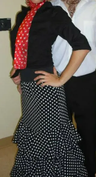 Falda flamenca negra con lunares rojos