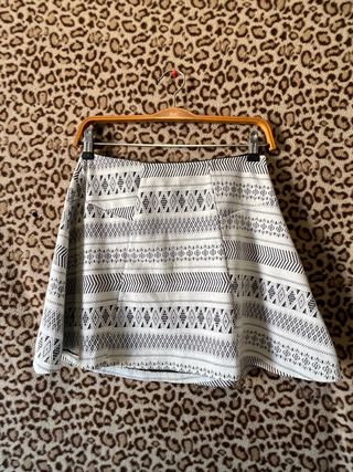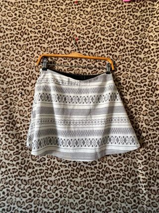 Falda corta con un diseño geométrico en blanco y negro. Es ligera y con vuelo. - Estampado tribal. - Cintura elástica.